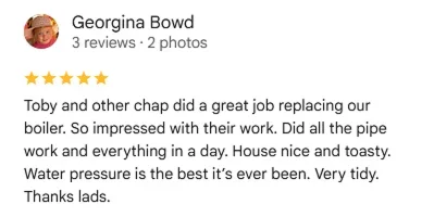 Our engineers have many years of working experience in the central heating and boiler industry, and we are Gas Safe registered.